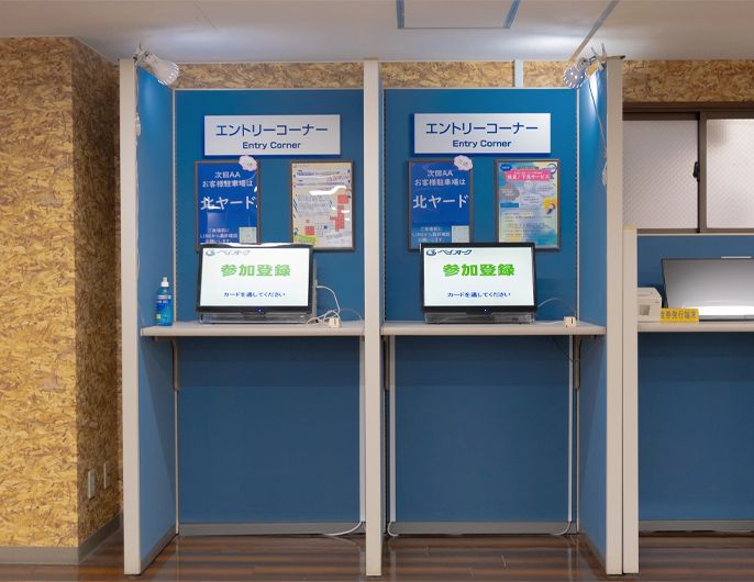 01.エントリーコーナーでPOSカードの受付をしてください。