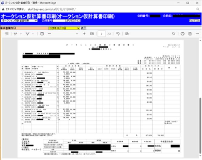 ベイネットからご出品車両の状況やトータル金額(仮計算書)をご確認頂けます。